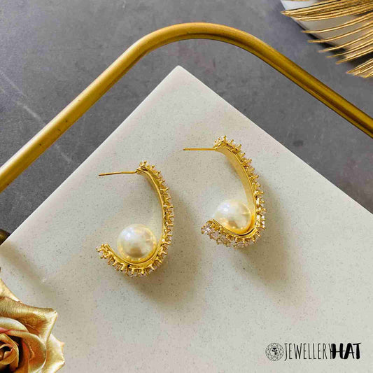 Gold Earrings For Women | With Pearl Drop | Pearl Drop Earrings For Women