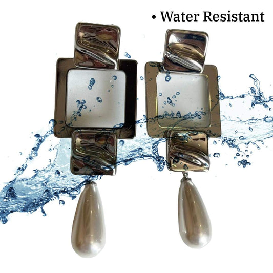 Geometric Square Drop Dangle Earrings with Pearl, Silver-Plated, Fashion Statement Dangle, Anti Tarnish, Water Resistant, Lightweight, Gift Packaged