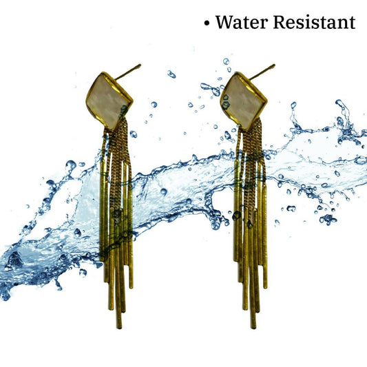 Gold-Plated Tassel Earrings with Pearl Square, 6 cm, Long Fringe Design, Anti Tarnish, Water Resistant, Lightweight, Gift Packaged