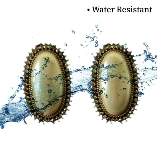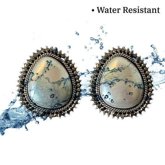 Oval shape pearl stud earrings silver | 4 cm | Antique Design | Anti Tarnish | Water Resistant | Western Style | Lightweight | Gift Packaged