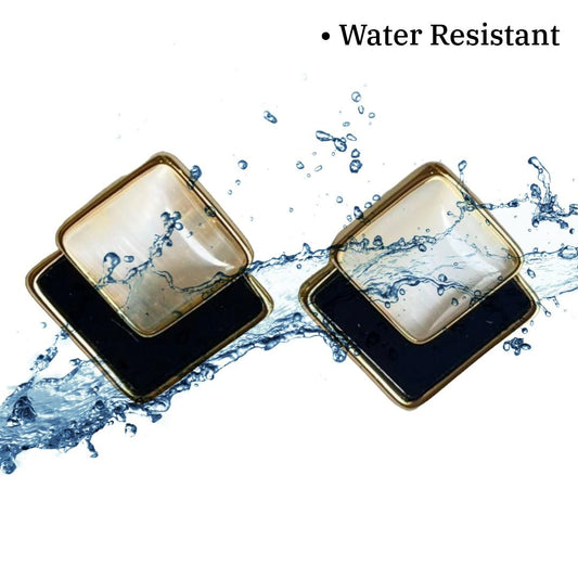 Pearl Square Stud Earrings, Black and Gold-Plated, Women's Fashion Jewellery, Anti Tarnish, Water Resistant, Lightweight, Gift Packaged