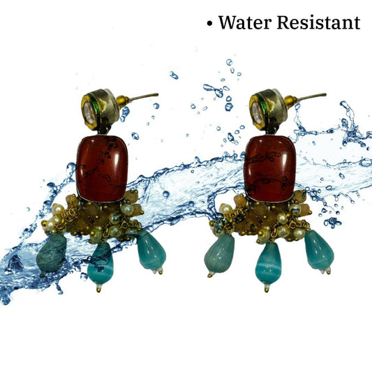 Style Drop Dangle Earrings, 6 cm, Pearl and Turquoise Beads, Red, Gold-Plated, Anti Tarnish, Water Resistant, Lightweight, Gift Packaged