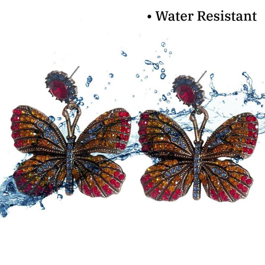 Crystal Butterfly Drop Earrings For Women, Red And Multicolour, Anti Tarnish, Water Resistant, Lightweight, Gift Packaged