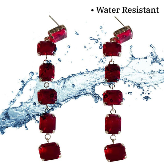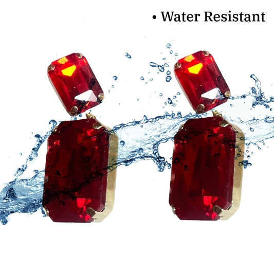Crystal Red Stud Earrings For Women, 4.5 cm, Rectangle Shape, Deep Red Colour, Anti Tarnish, Water Resistant, Lightweight, Gift Packaged