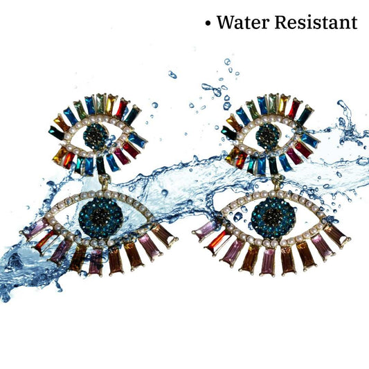 Crystal Evil Eye Drop Dangle Earrings, 5.5 cm, Pearl Beaded, Multicolour Earrings, Anti Tarnish, Water Resistant, Lightweight, Gift Packaged
