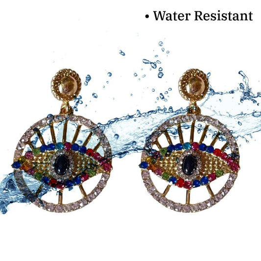 Crystal Evil Eye Stud Earrings, 4.5 cm, Multicoloured Statement Stud Earrings for Women, Gold-Plated, Anti Tarnish, Water Resistant, Lightweight, Gift Packaged