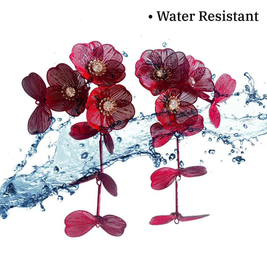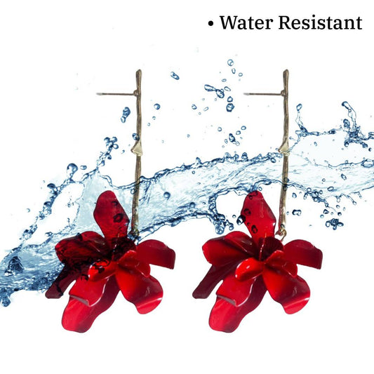 Red Earrings, Floral Statement Earrings for Women, Stud Design with Gold Plated, Anti Tarnish, Water Resistant, Lightweight, Gift Packaged
