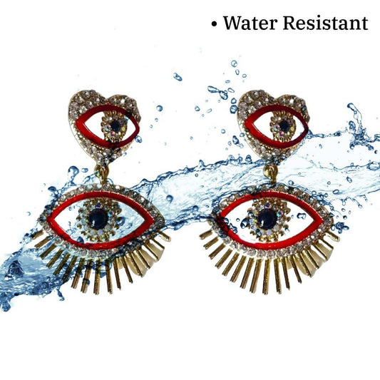 Evil Eye Drop Earrings, 5.5 cm, Heart Design with Red Enamel, Gold-Plated, Anti Tarnish, Water Resistant, Lightweight, Gift Packaged