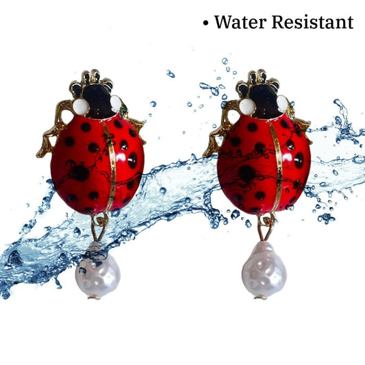 Turtle Design Pearl Drop Earrings, 5 cm, Red and Black Enamel, Gold-Plated, Anti Tarnish, Water Resistant, Lightweight, Gift Packaged