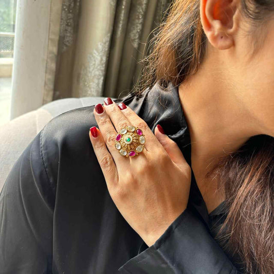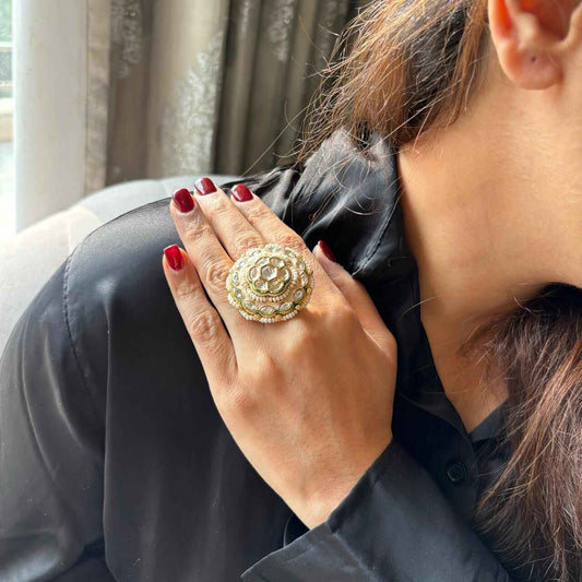 Kundan Type Big Ring | Anti-Tarnish | Water Resistant | Gift Box Packing