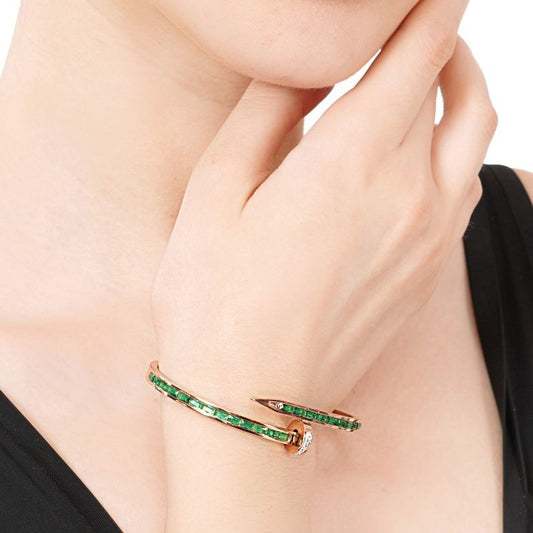 Studded Snake Bracelet For Women, Gold Plated Fashion Bracelet with Emerald Eyes, 6.5 cm, Anti Tarnish, Water Resistant, Lightweight, Gift Packaged
