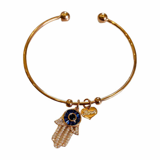 Humsa Bangle Rosegold With Mini Heart Charm | Best Quality Humsa Jewellery For Girls