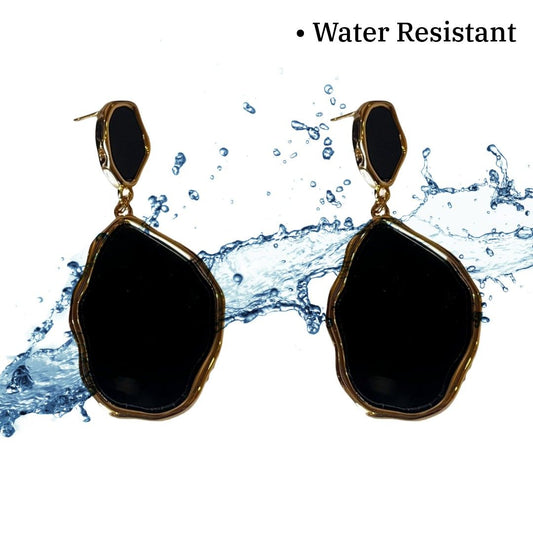 Black Earrings For Women, Elegant Drop Earrings, 3.5 cm, Black and Gold Plated, Teardrop Shape, Anti Tarnish, Water Resistant, Lightweight, Gift Packaged