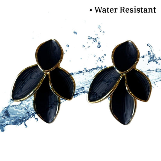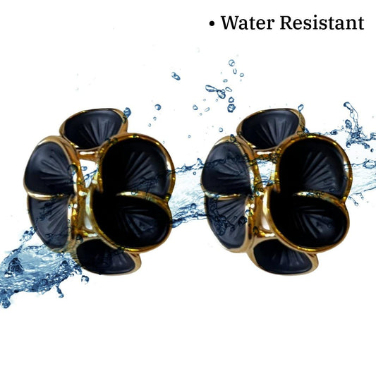 Black Earrings, Elegant Black Floral Stud Earrings for Women, 3 cm, Gold-Plated, Petal Design, Anti Tarnish, Water Resistant, Lightweight, Gift Packaged