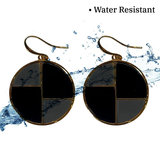 Black Earrings, Elegant Round Black Geometric Stud Earrings, 2.8 cm, Gold-Plated, Anti Tarnish, Water Resistant, Lightweight, Gift Packaged
