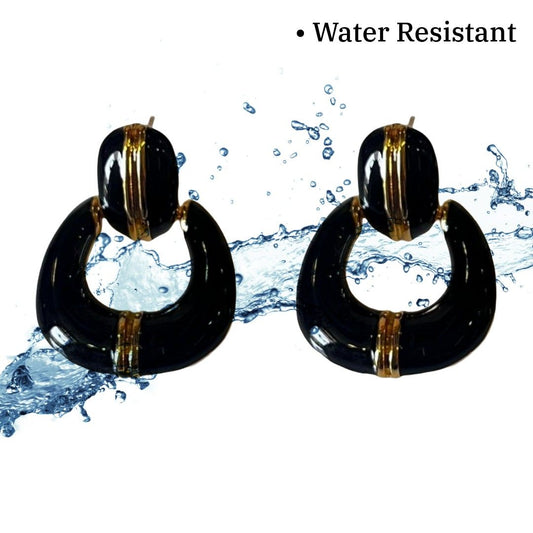 Elegant Black and Gold Teardrop Stud Earrings, 3 cm, Water Resistant, Anti-Tarnish Plated, Lightweight Fashion Jewelry with Gift Package