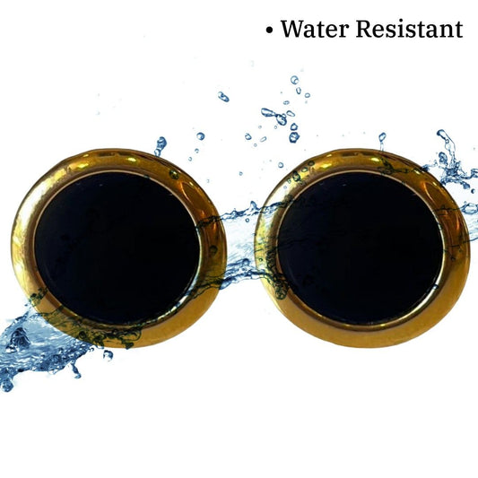 Black Earrings, Round Black and Gold Stud Earrings for Women, 2.2 cm, Anti Tarnish, Water Resistant, Lightweight, Gift Packaged