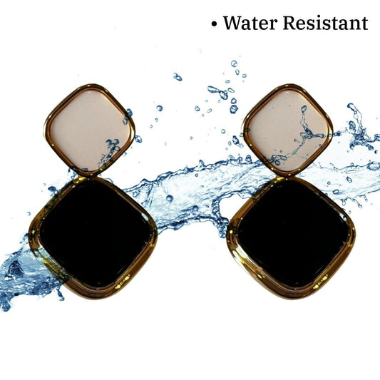 Trendy Stud Earrings For Women, 2 cm, Gold Plated, Fashion Jewelry for Women, Black Earrings, Anti Tarnish, Water Resistant, Lightweight, Gift Packaged