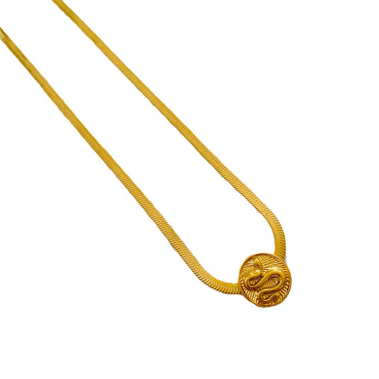 Our coiled snake necklaces feature serpents that wrap elegantly around the chain, creating a fluid, dynamic look. These pieces mimic the natural movement of a snake, making them ideal for those who want to embrace the full symbolism of the serpent. Available in various finishes, these necklaces offer both elegance and boldness.