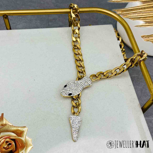Welcome to Jewellery Hat’s captivating collection of snake necklaces, where symbolism meets bold fashion. Snake jewelry has been a symbol of power, mystery, and transformation for centuries, and our snake necklaces bring this timeless motif into modern fashion. Crafted with attention to detail, these necklaces are perfect for those looking to make a daring statement or embrace the deeper meaning behind the snake symbol. Whether you're drawn to their allure or simply looking for a unique addition to your jewelry collection, our snake necklaces are designed to captivate and inspire confidence.