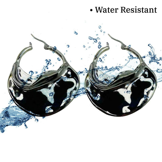 Black Earrings For Women, lack Petal Hoop Earrings, 3.5 cm, Gold-Plated, Statement Fashion Jewelry for Women, Anti Tarnish, Water Resistant, Lightweight