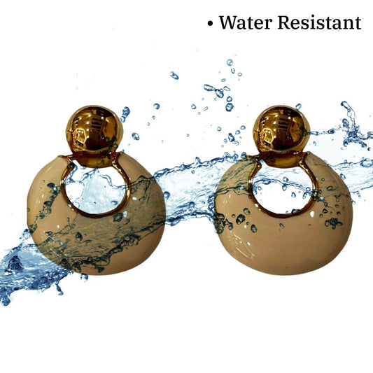 Round Gold-Plated Stud Earrings, White Earrings For Women, Women's Fashion Jewellery, Anti Tarnish, Water Resistant, Lightweight, Gift Packaged