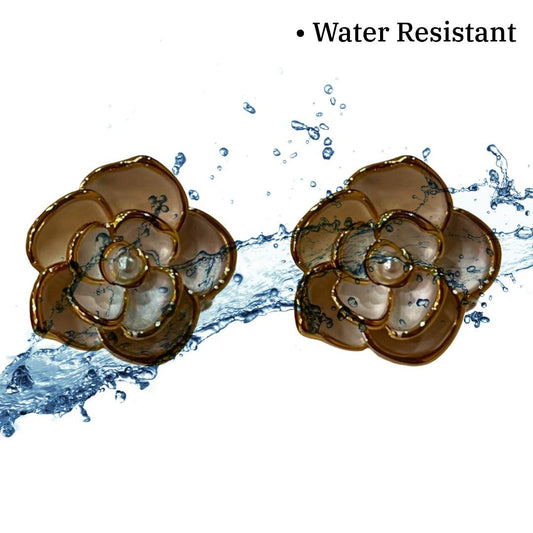 Black Earrings, Elegant Black Floral Stud Earrings for Women, 3 cm, Gold-Plated, Petal Design, Anti Tarnish, Water Resistant, Lightweight, Gift Packaged