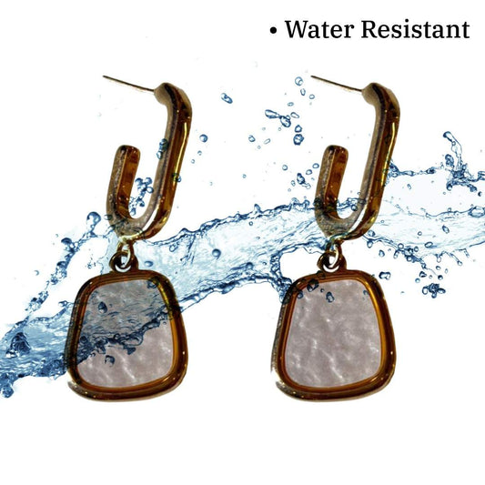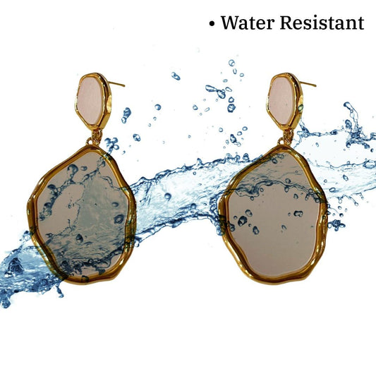 Geometric Drop Dangle Earrings For Women, Gold-Plated, Irregular Oval Design, White, Anti Tarnish, Water Resistant, Lightweight, Gift Packaged