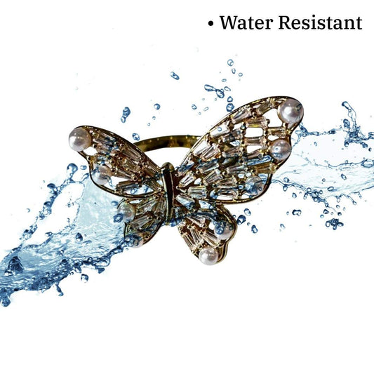 Butterfly Ring For Women with Crystal and Pearl Accents, Gold-Plated, White, Anti Tarnish, Water Resistant, Lightweight, Gift Packaged