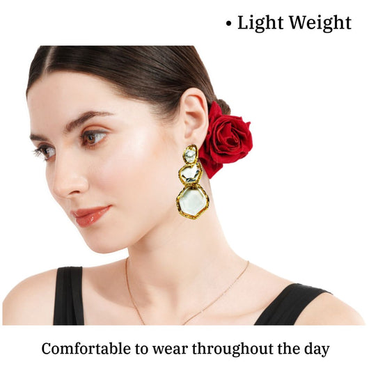 Crystal Drop Earrings, White Earrings For Women, Gold-Plated Square, Anti Tarnish, Water Resistant, Lightweight, Gift Packaged