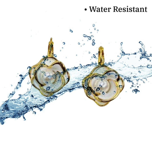 Elegant Pearl Flower Stud Earrings, Gold-Plated, White Earrings For Women, Anti Tarnish, Water Resistant, Lightweight, Gift Packaged