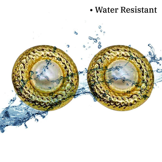 Round Gold-Plated Stud Earrings, White Earrings For Women, Women's Fashion Jewellery, Anti Tarnish, Water Resistant, Lightweight, Gift Packaged