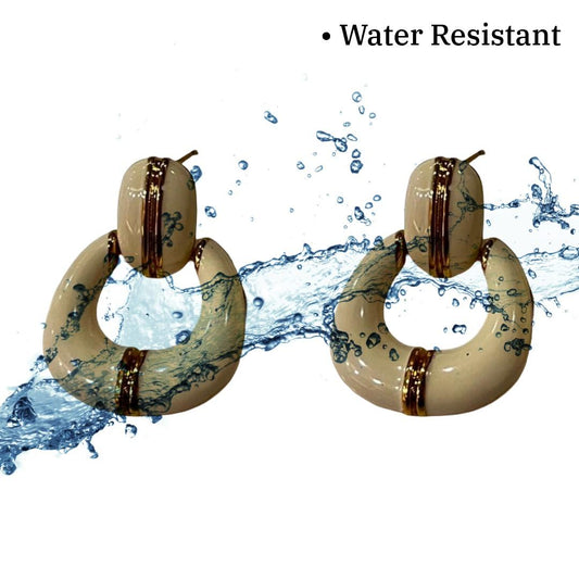 Statement Drop Earrings, Cream White with Gold Accents, White Earrings, Anti Tarnish, Water Resistant, Lightweight, Gift Packaged