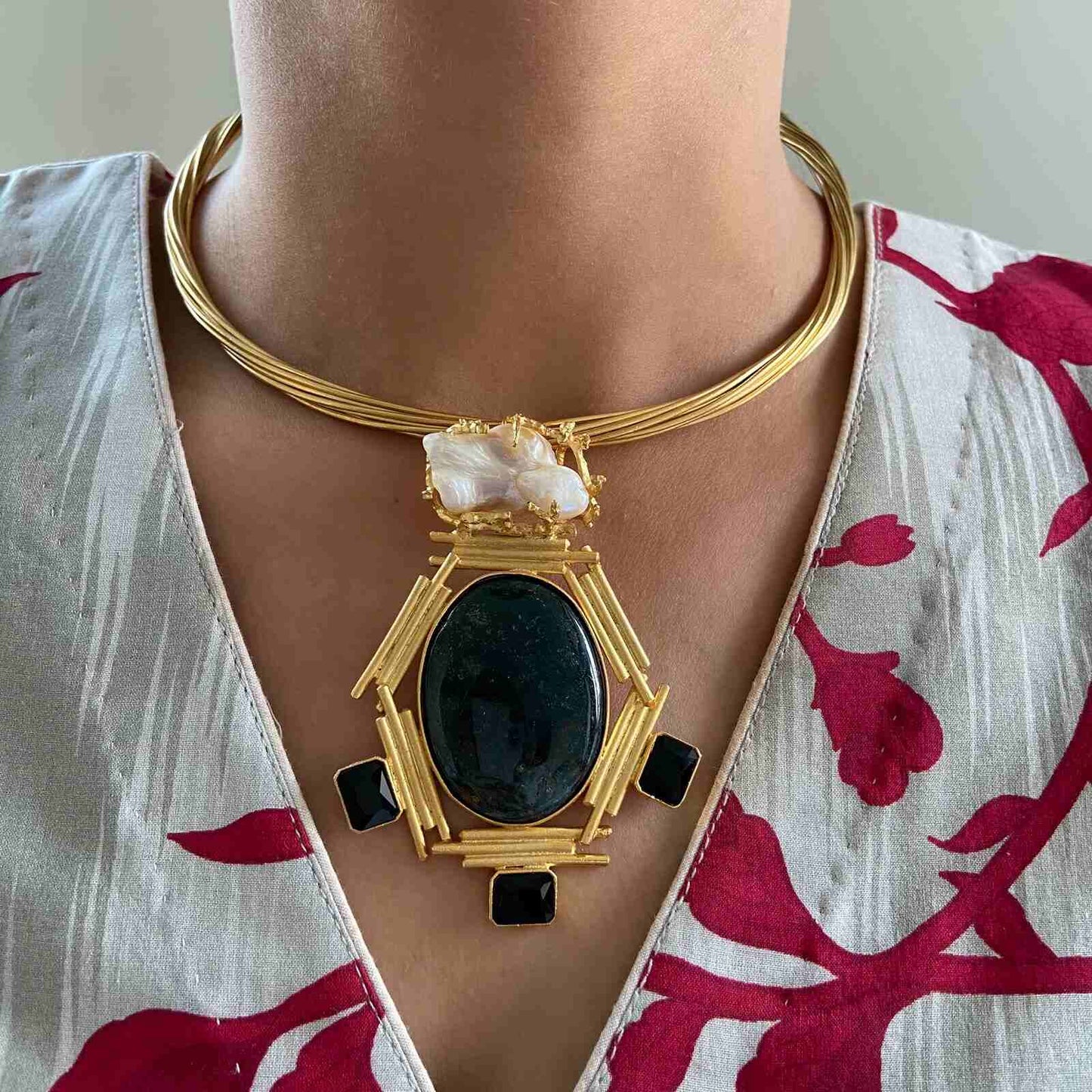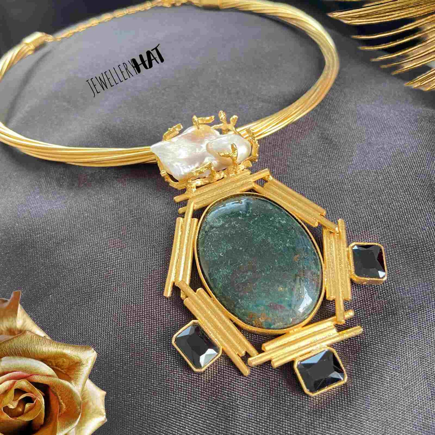 The 'Baansuri' Necklace is a tribute to the mellifluous tunes of life, inspired by the serene melodies of the bamboo flute. Its intricate design reflects the fluidity and grace of musical notes, enhancing the wearer's charm with a touch of refined elegance. Meticulously handcrafted with attention to detail, this necklace seamlessly combines traditional artistry with contemporary allure, making it the perfect adornment for any festive occasion.