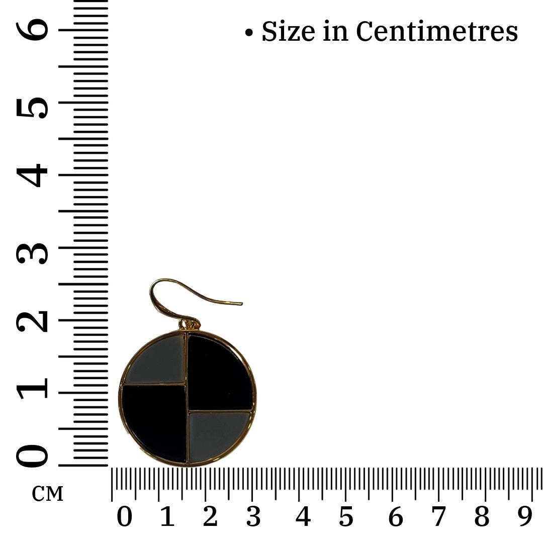 Coating : Gold Plated - Black Earrings, Elegant Round Black Geometric Stud Earrings, 2.8 cm, Gold-Plated, Anti Tarnish, Water Resistant, Lightweight, Gift Packaged