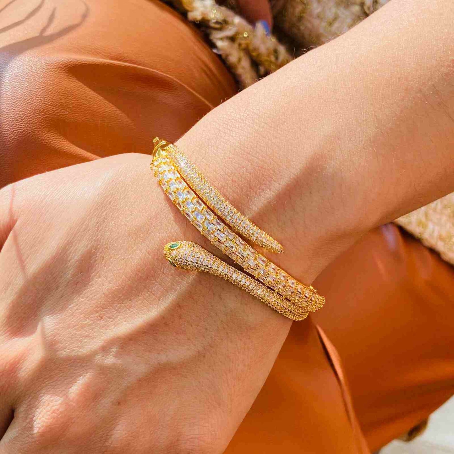 Crafted with meticulous attention to detail, this bracelet features a sleek and sinuous snake motif, delicately coiled around your wrist. Each intricate scale and curve is meticulously crafted to capture the essence of these mystical creatures, evoking a sense of power, wisdom, and transformation.