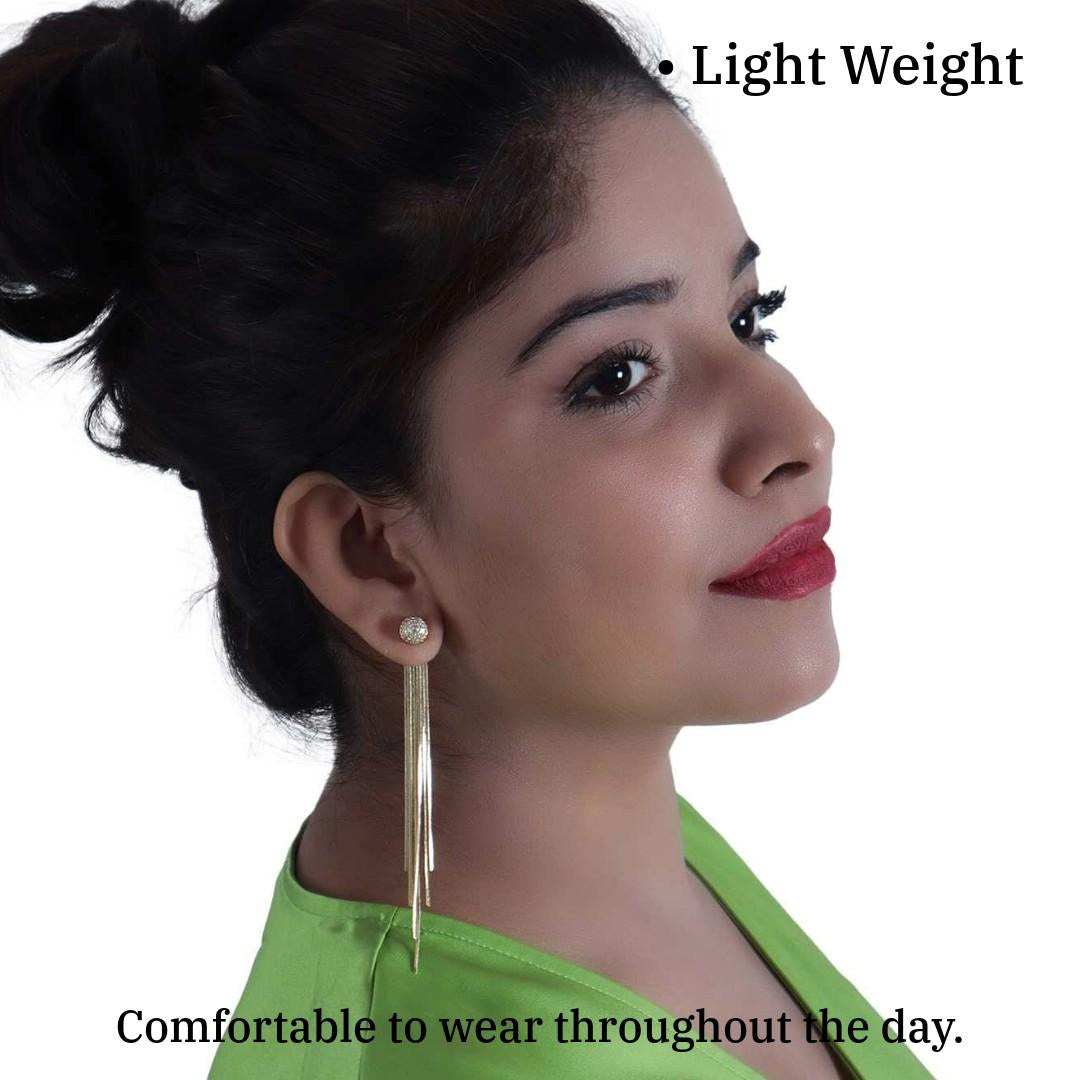 In summary, our Earrings for Long Gown are the ultimate expression of elegance and sophistication. With their Anti-tarnished properties, they radiate brilliance that stands the test of time. Waterproof Technology ensures that you shine regardless of the weather. Experience the ethereal comfort of Super Light Weight Technology and embrace the assurance of our Lifetime Replacement Warranty. Crafted with Premium Quality, these earrings elevate your allure and grace. Perfume Friendly and boasting an In Trend Modern Design, they effortlessly complement your ensemble, adding a touch of exquisite charm. Adorn yourself with these exquisite earrings and let them sway with every step, a symbol of your enduring charm and contemporary sophistication, perfectly suited for any long gown or glamorous occasion.