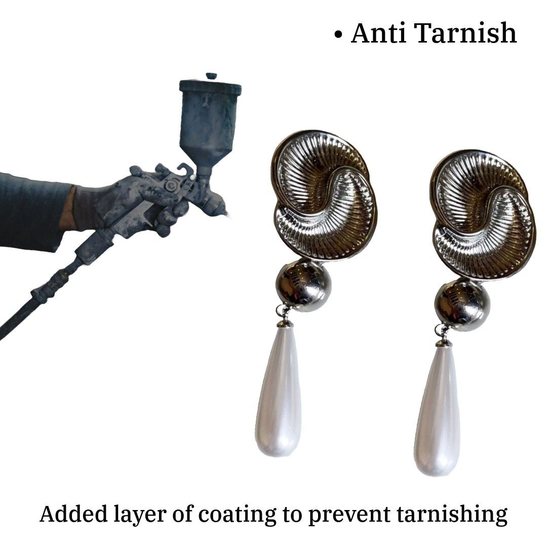Coating : Silver Plated - Elegant Drop Dangle Earrings, 7.5 cm, Silver-Plated Spiral Design with Pearl Teardrop, Dangle Style, Anti Tarnish, Water Resistant, Lightweight, Gift Packaged