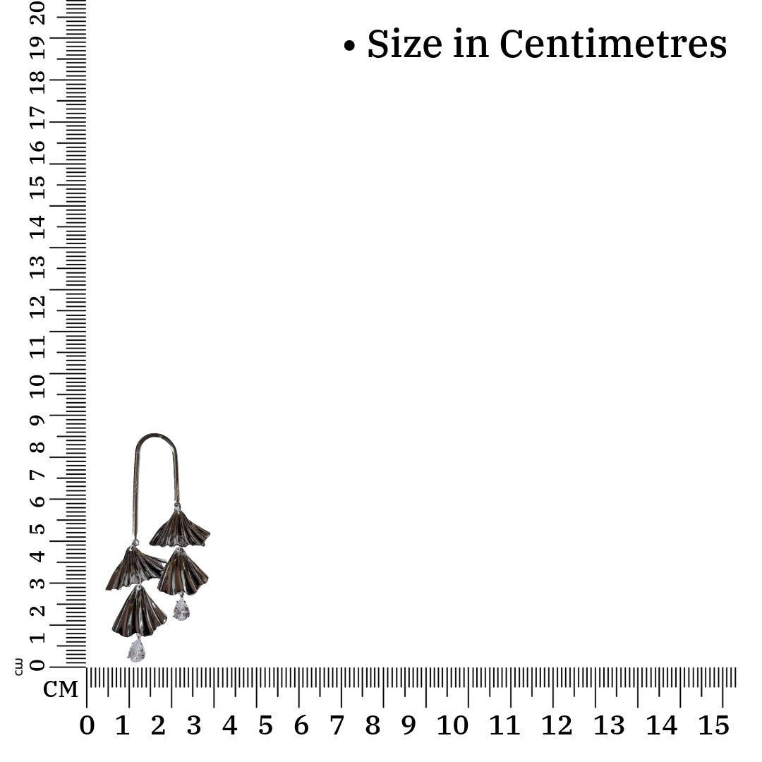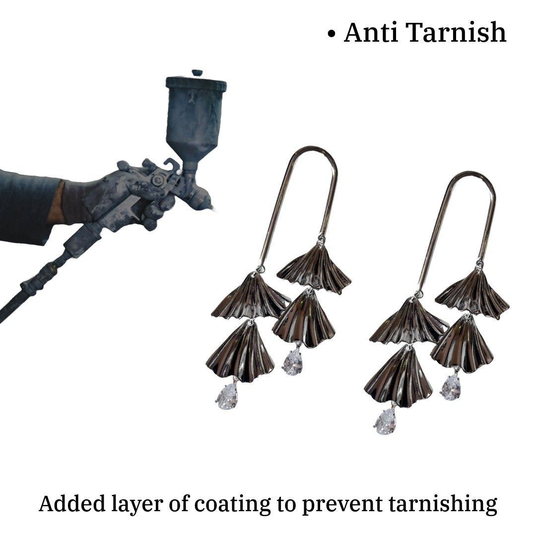 Coating : Silver Plated - Elegant Fan-Shaped Drop Earrings with Crystal, Black And White Finish, Dangle Style, Anti Tarnish, Water Resistant, Lightweight, Gift Packaged