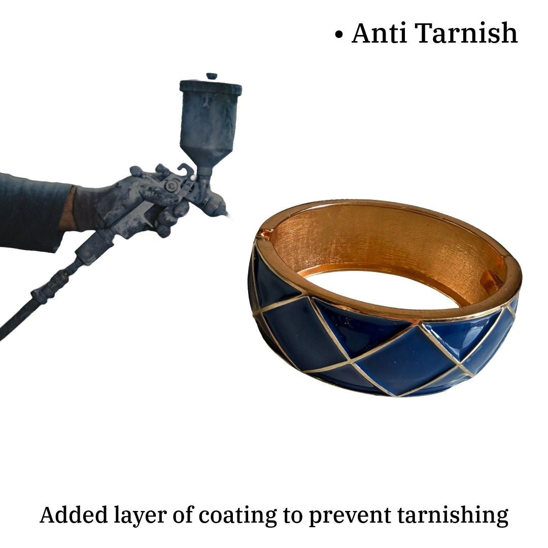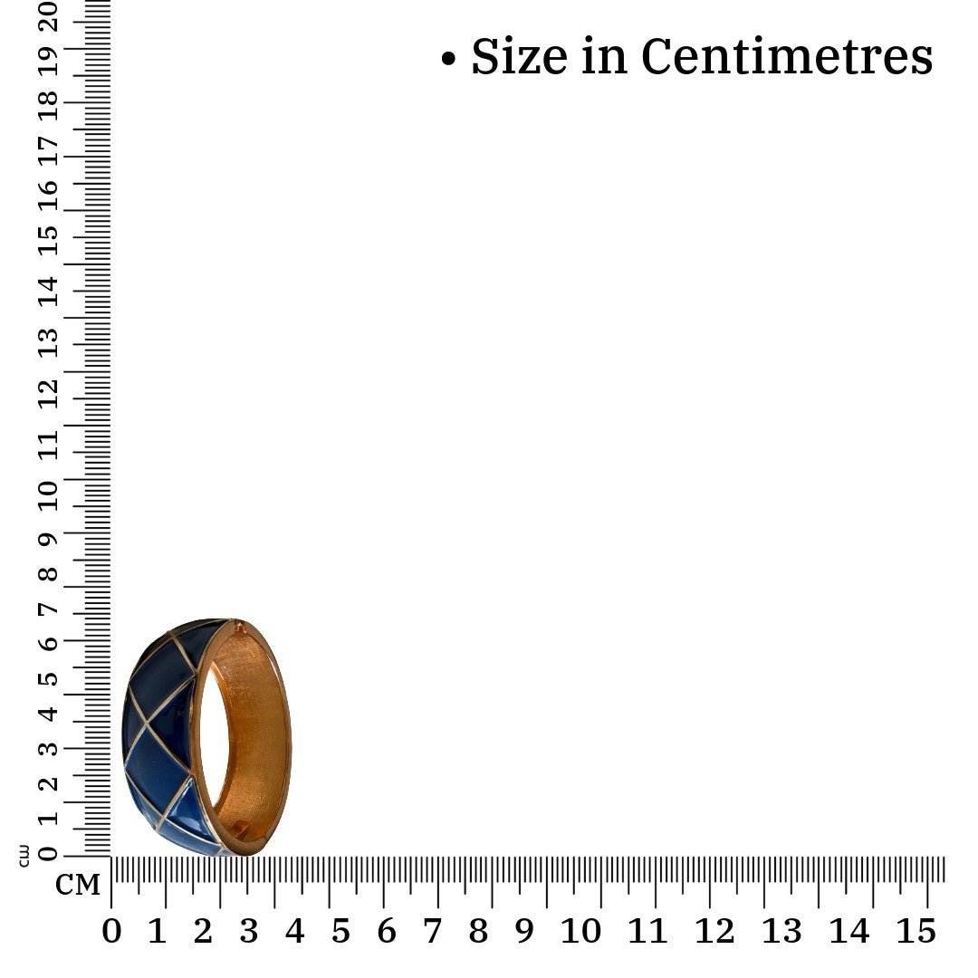 Enamel Bangle Bracelet for Women – Blue and Gold Geometric Pattern | 7.0 cm Hinged Cuff | Anti Tarnish | Water Resistant | Lightweight | Gift Packaged