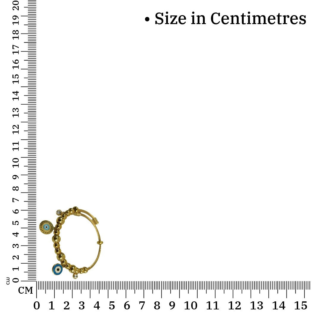 The gold-toned base of this bracelet adds a luxurious glow, while the blue evil eye charms create a striking contrast that instantly draws attention. The addition of finely crafted beads enhances the overall design, giving it a balanced blend of minimalism and detail.