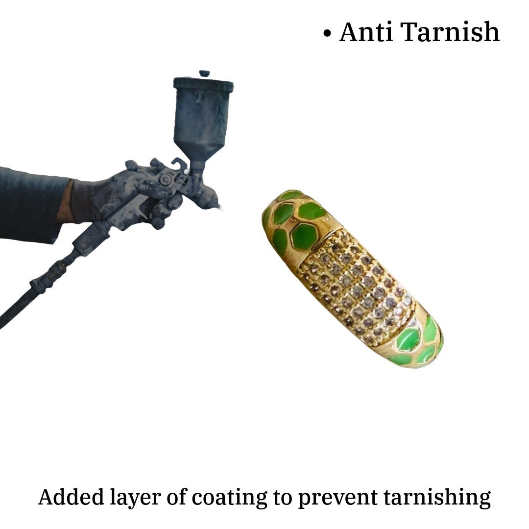 Although our premium range is anti tarnish, Over a longer period of time fashion jewellery might lose shine and brightness when exposed to sweat, moisture, oils and salts. Keep your jewellery safe and free of tarnish by keeping it as dry as possible. For More Info Read Blog - Jewellery Care