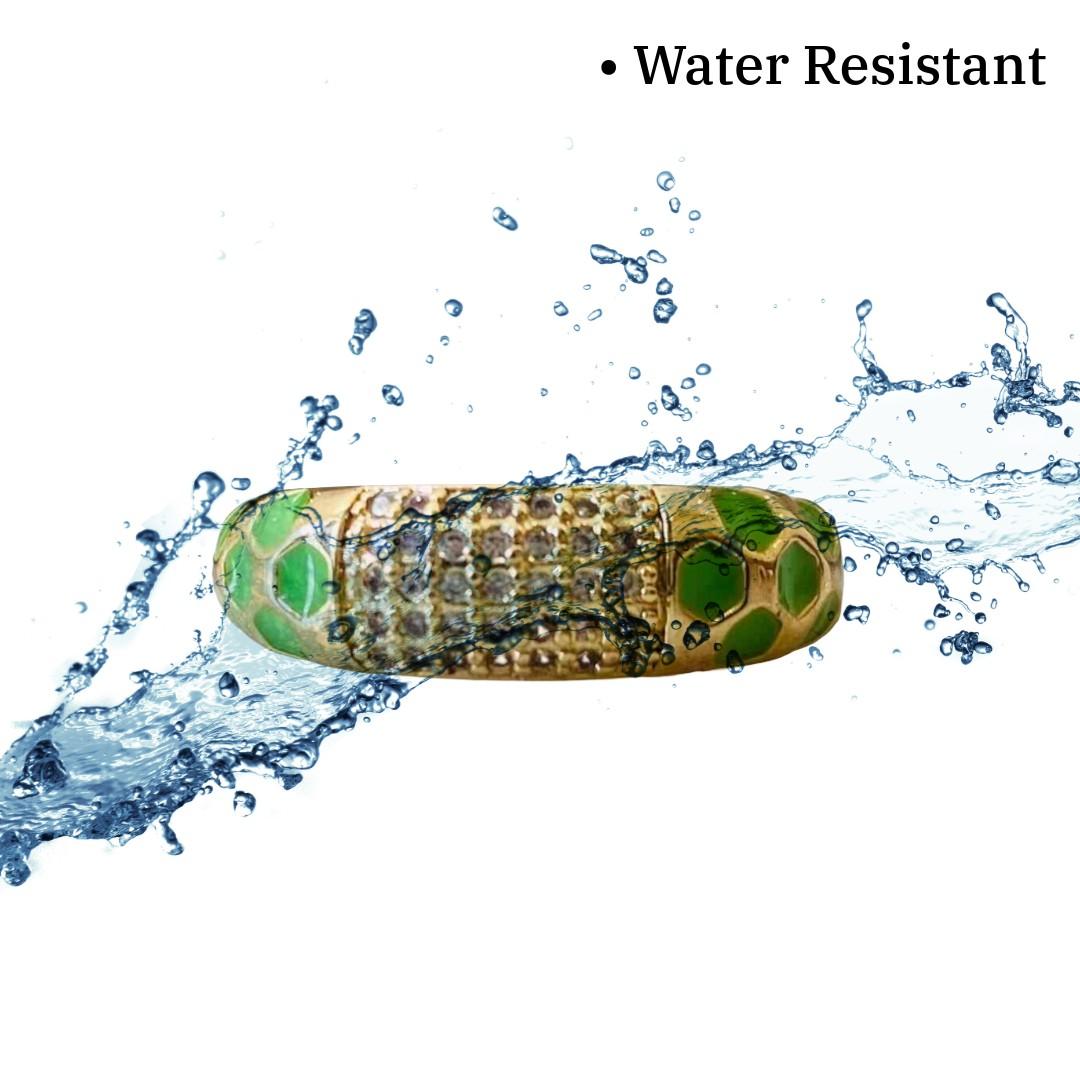 But what truly sets our Green Rings apart is their waterproof construction. Made from high-quality materials and innovative techniques, these rings are designed to withstand the elements without compromising on style or durability. Whether you're washing your hands, swimming in the ocean, or caught in a sudden rain shower, rest assured your green ring will remain as radiant and resilient as ever.