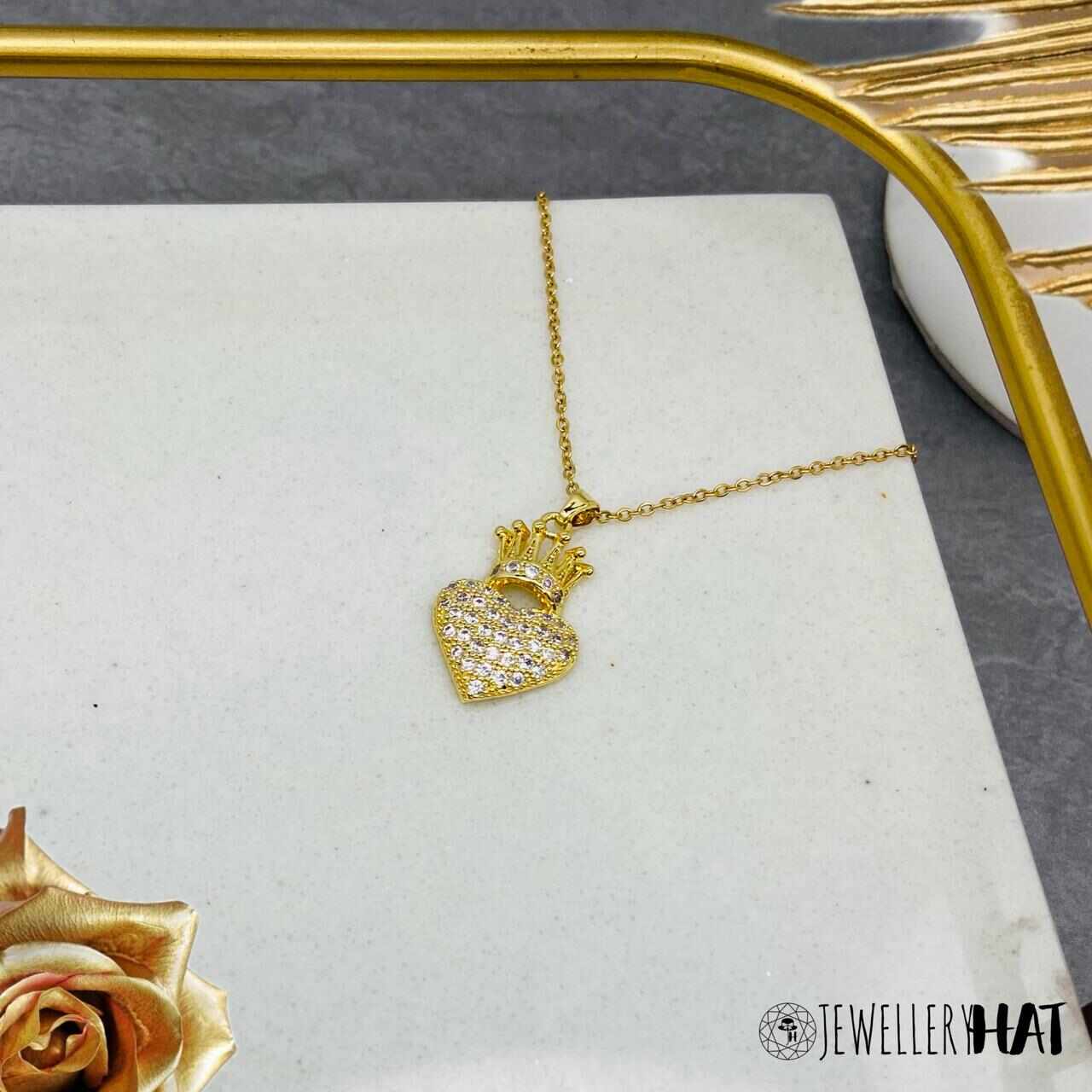 Contents : 1 Piece Of Heart Crown Necklace | Gold Plated Heart Crown Necklace for Women | Artificial Jewellery