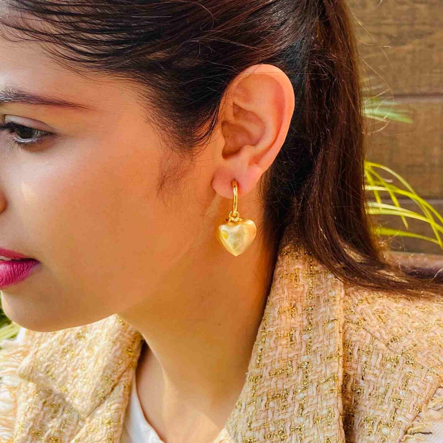 Versatile and easy to style, these earrings are the perfect accessory for any outfit or occasion. Pair them with a sleek cocktail dress for a night out on the town, or wear them with your favorite jeans and a cozy sweater for a chic and casual look. However you choose to wear them, these Hoop Earrings with Heart are sure to add a touch of glamour and sophistication to any ensemble.