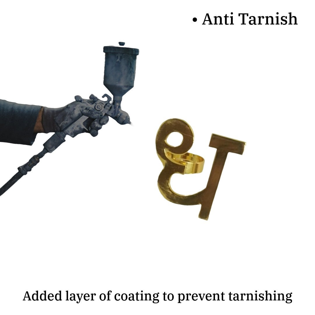 This ring uniquely highlights the charm of Indian script, making it a meaningful fashion accessory. The Hindi letter Dha is beautifully sculpted with smooth curves and a bold structure, perfect for women who love personalised or culturally inspired jewellery.