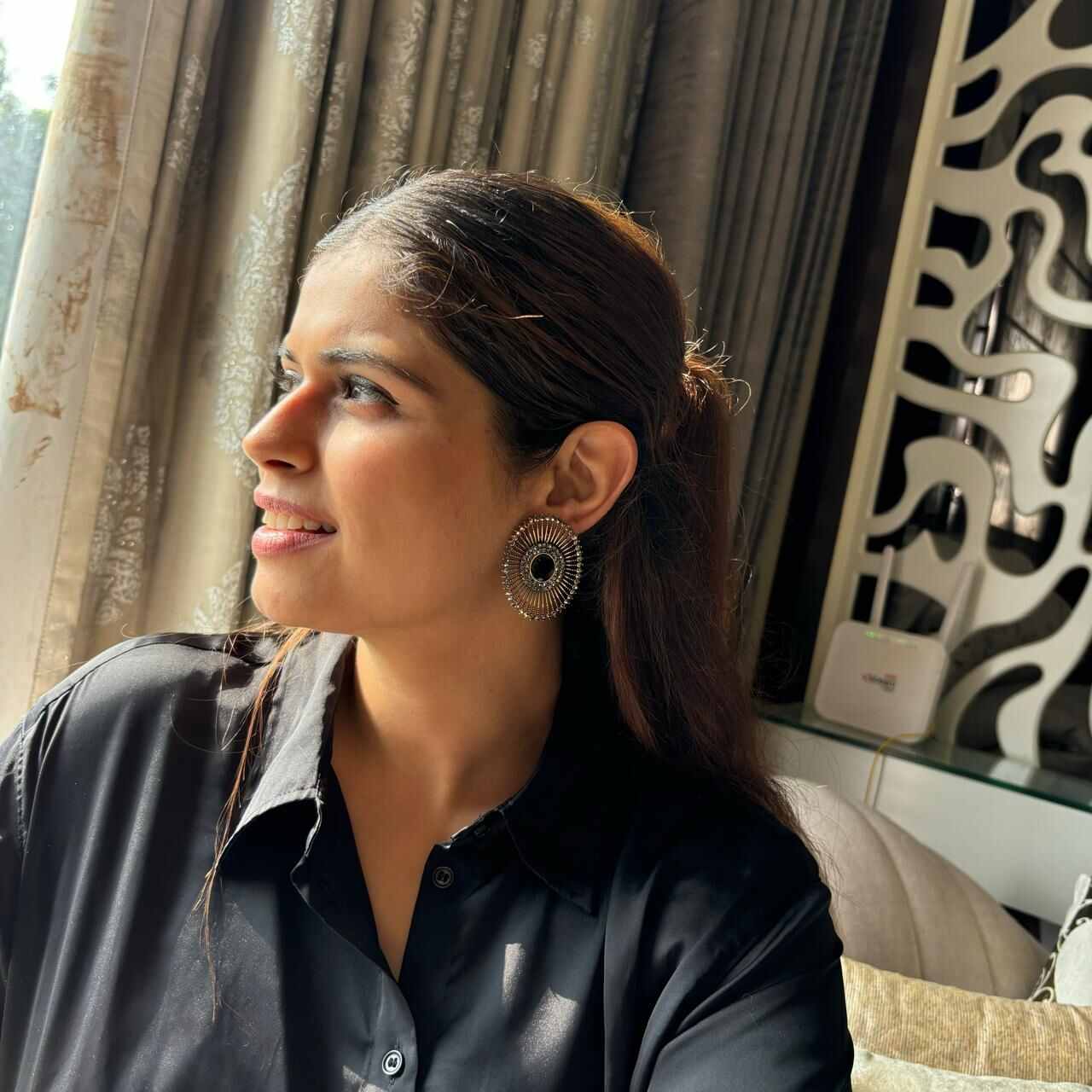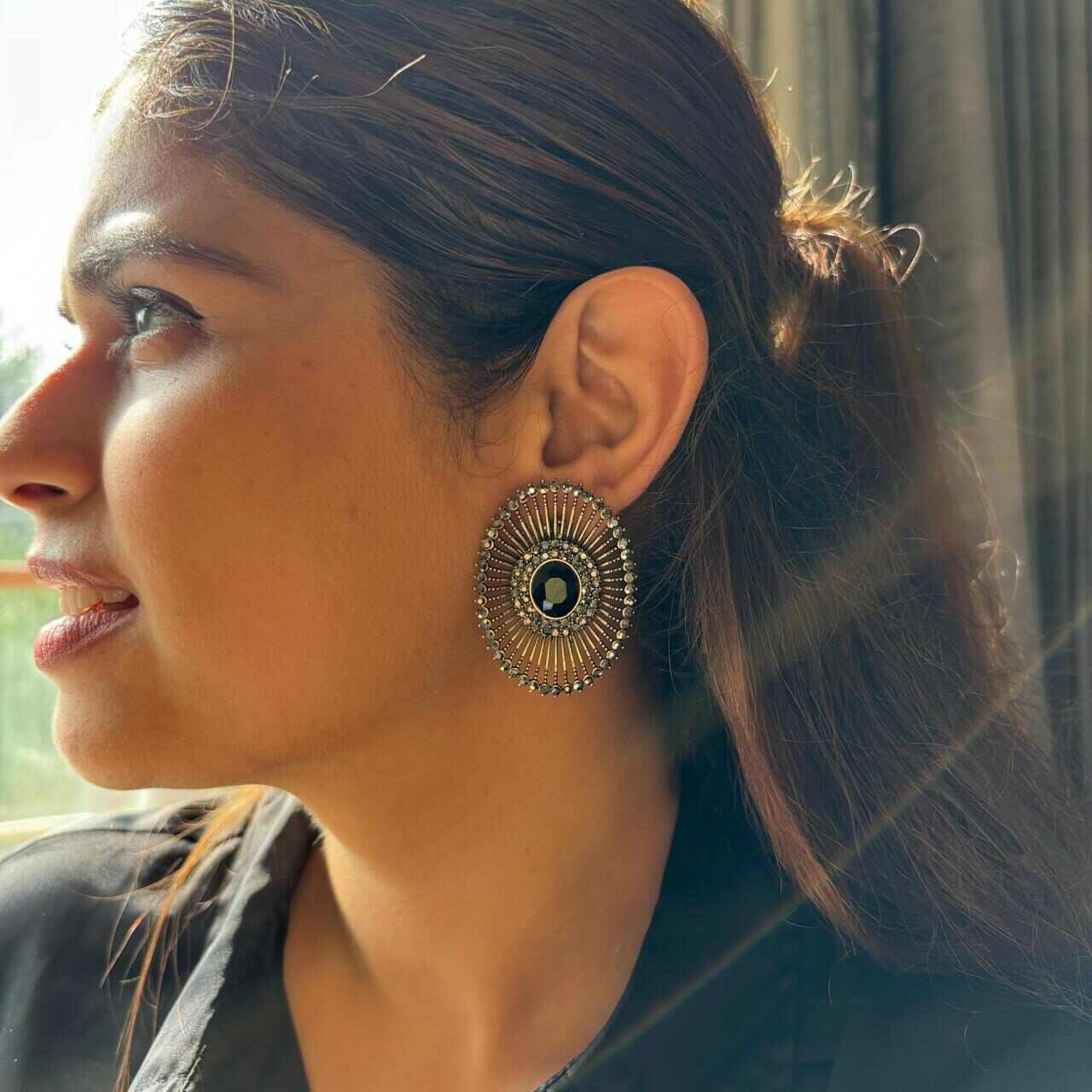 - Trending Design: These earrings capture the essence of modern trends while honoring the timeless beauty of oxidised jewelry. The black stone centerpiece adds a striking contrast, creating a captivating accessory that’s perfect for any occasion.