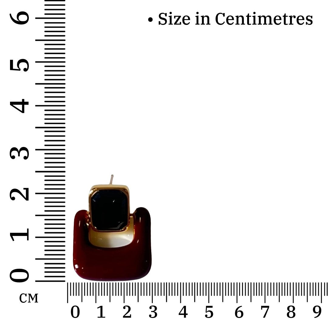 Base Material : Alloy - Red Earrings, Square Crystal Stud Earrings for Women, Gold Plated, Anti Tarnish, Water Resistant, Lightweight, Gift Packaged