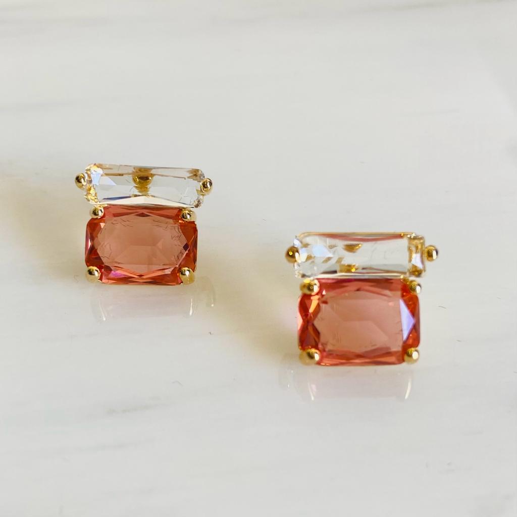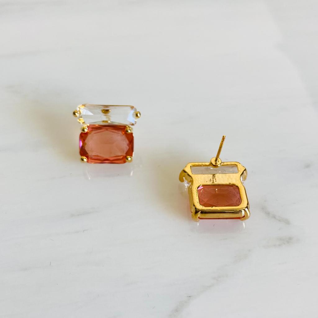 The ruby crystal stone is a pink peach type colour that is associated with passion and vitality. It is believed to have healing properties and can help to improve energy levels, making these earrings not only a stylish accessory, but also a potentially beneficial one.