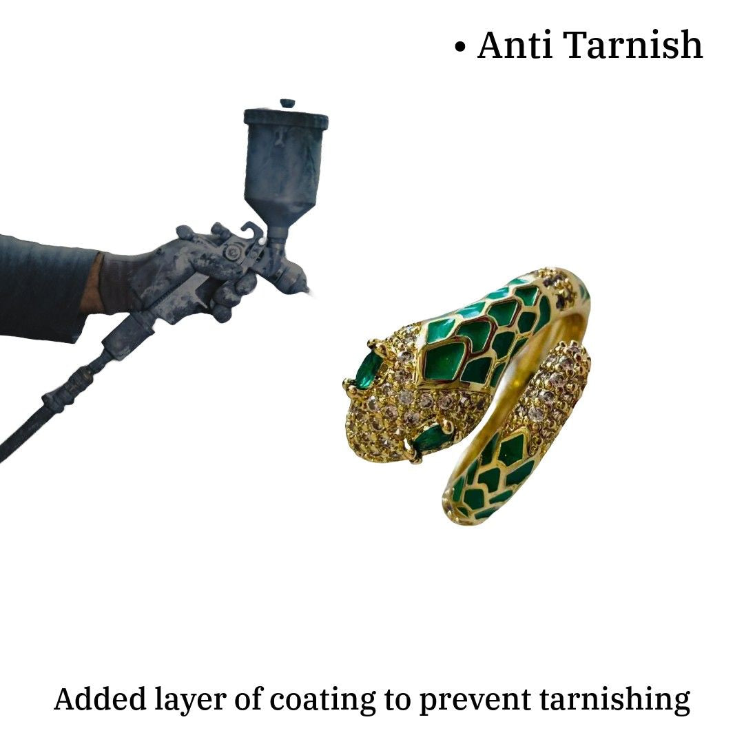 Coating : Gold Plated - Serpent Ring | Green Snake Ring